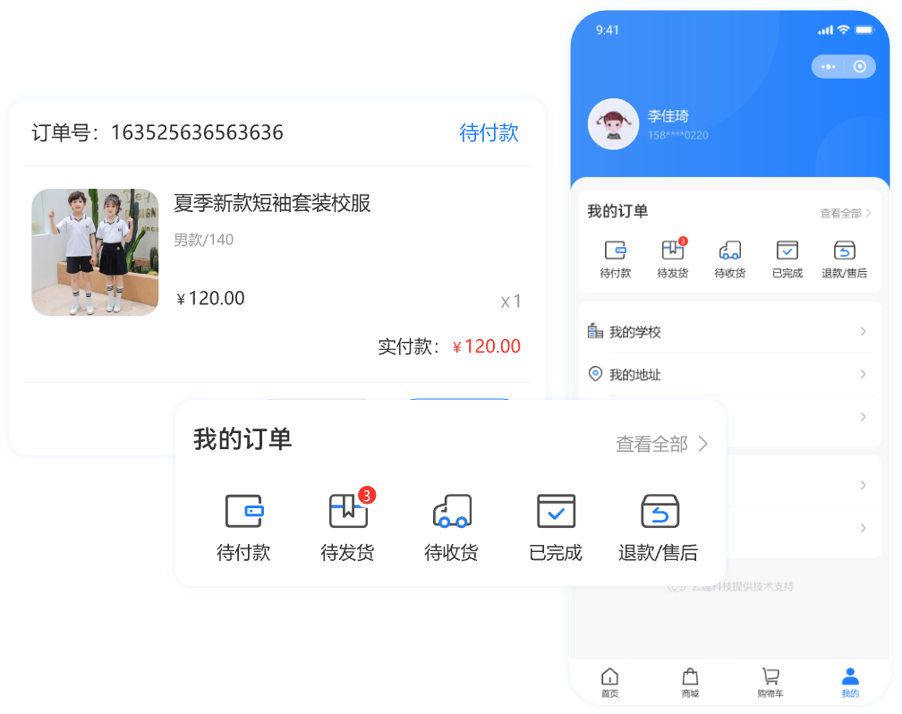 校服企业通过云趣提供的后台管理系统进行售后服务及运营管理,极大地简化了校服收款中的繁杂程序,使企业可以从校服收款中解脱出来,将更多精力投入到企业自身的运营当中。